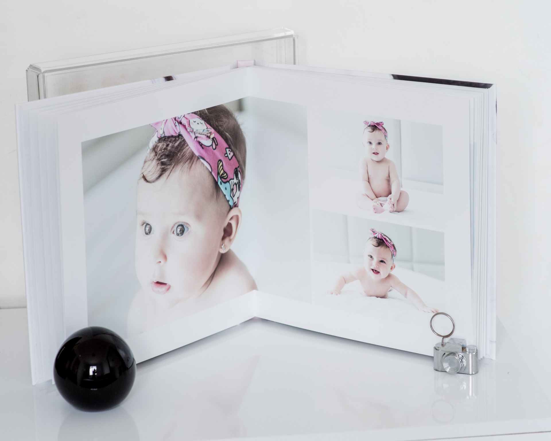Capa fotográfica resistente, estojo, possui 30 páginas cabendo até 45 fotos escolhidas. É feita uma diagramação para análise e aprovação do cliente antes da confecção para entrega.