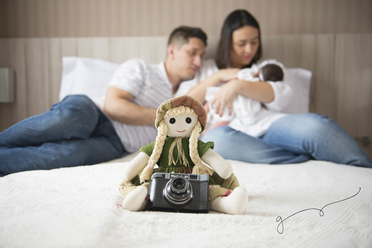 Esse ensaio foi ainda mais encantador pois tínhamos elementos carregados de amor e de história, como a boneca que fez parte da infância da mamãe Ísis e a Câmera fotográfica que foi do Vovô Laércio.