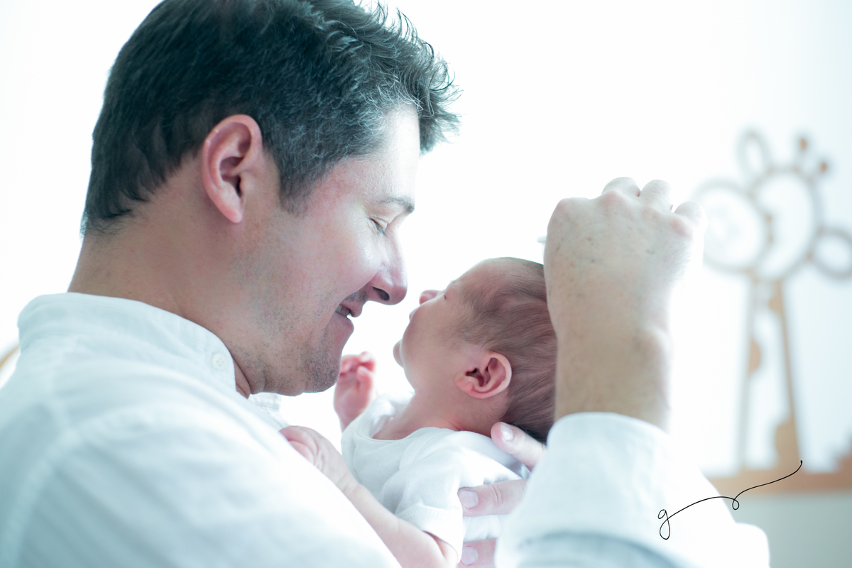 O papai cercava-os com aquele olhar cheio de cuidados e amor. Era a função dele colocar o Samuel para arrotar e nesse momento, foi inevitável não nos encantar com aquela cenas de afeto e conexão entre eles.